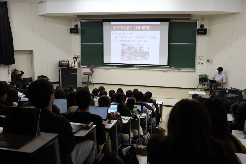 4月10日(金)に行われた「むらの大学Ⅰ」の初回授業では、今年度も多くの学生がガイダンスに参加し、真剣な様子で説明に耳を傾けていました。これから学生たちは、現在も復興と地域再生に取り組む地域(双葉郡川内村、大熊町、南相馬市小高区、飯館村)を実際に訪れ、地域の復興や実情について学びます。