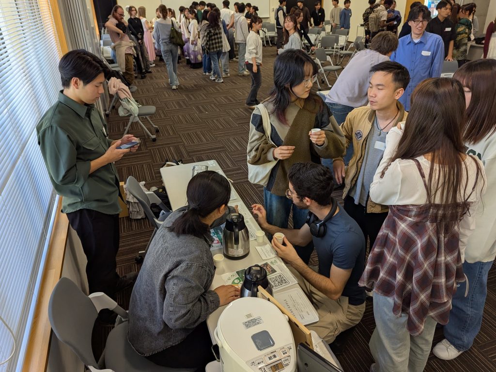 「協働プロジェクト学修」福島を世界とつなげる! F ブリッジプログラム班、「自主学修プログラム」Tea & Things班の合同で、福島大学の交換留学生歓迎会会場においてフルーツハーブティーに関するアンケート調査を実施しました。