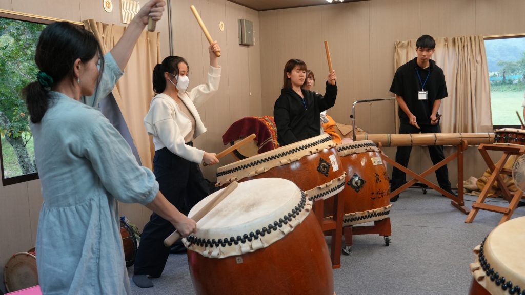 学生たちは、12月4~6日に行われる山津見神社例大祭での虎捕太鼓奉納に向けて、佐須地区サロンの皆さんや虎捕太鼓チームの皆さんとともに、日々練習に励んでいます。
